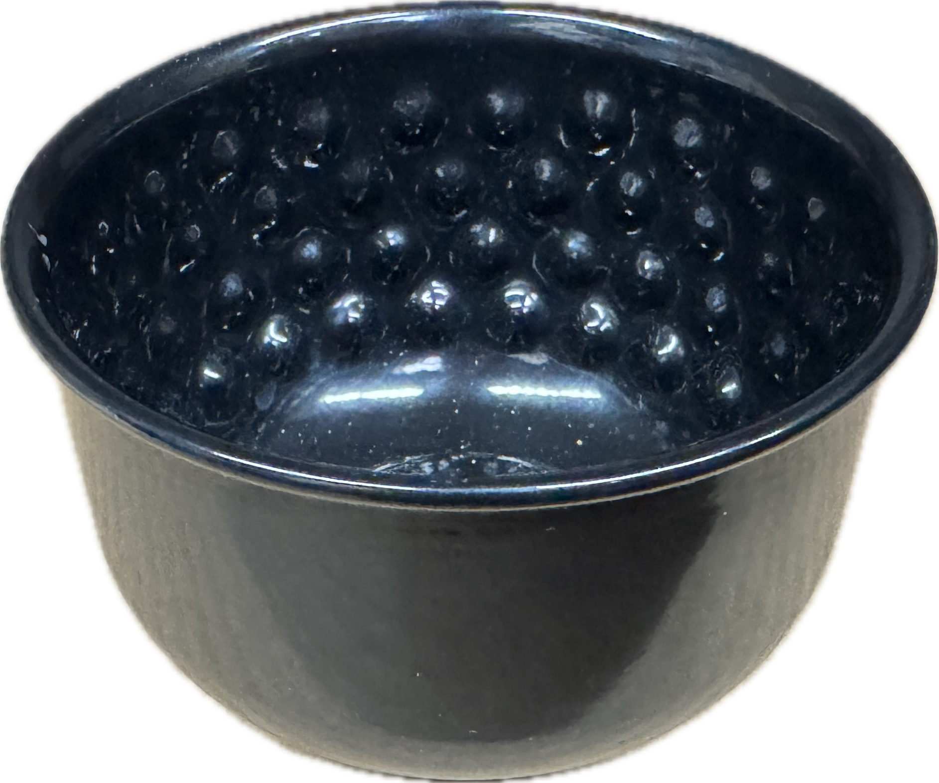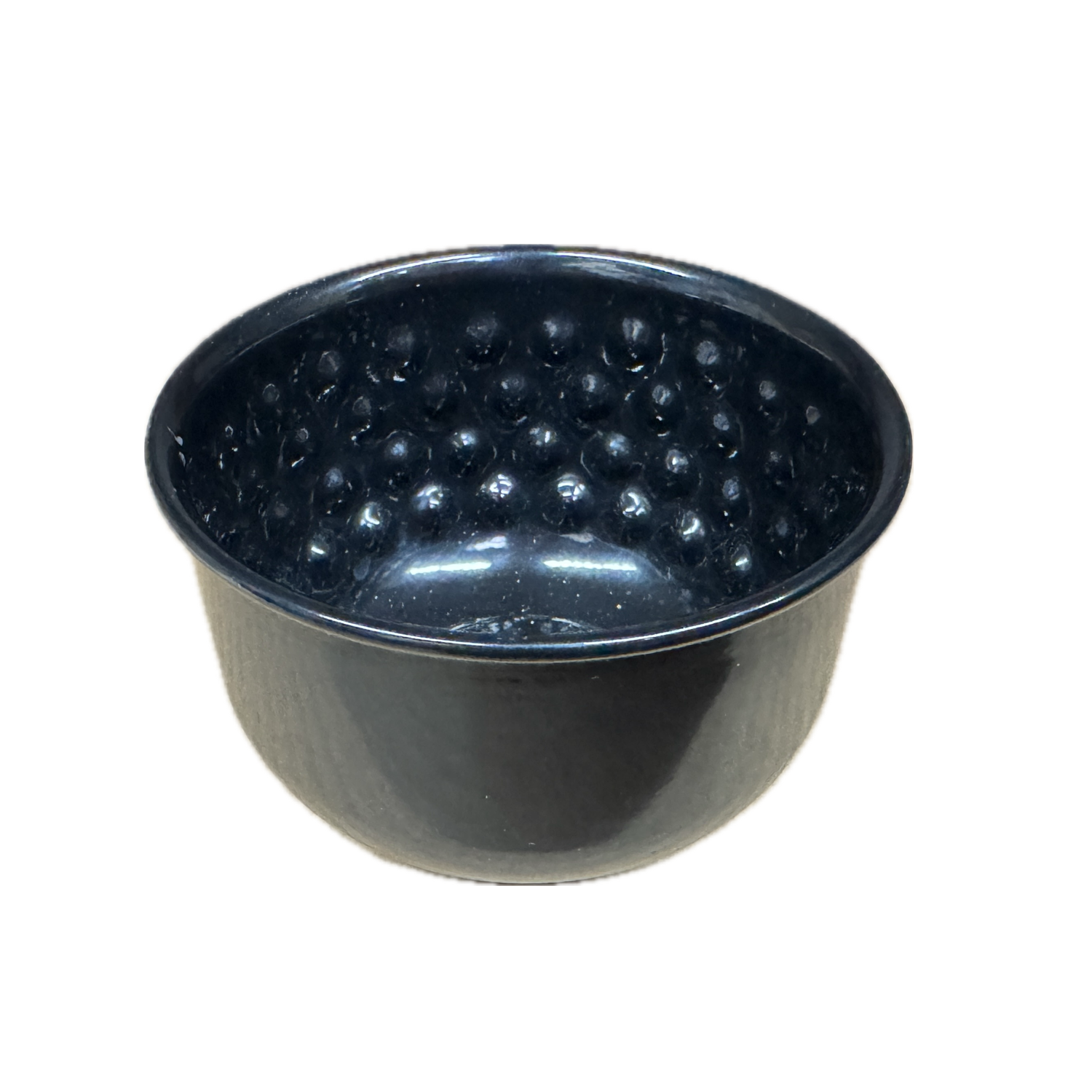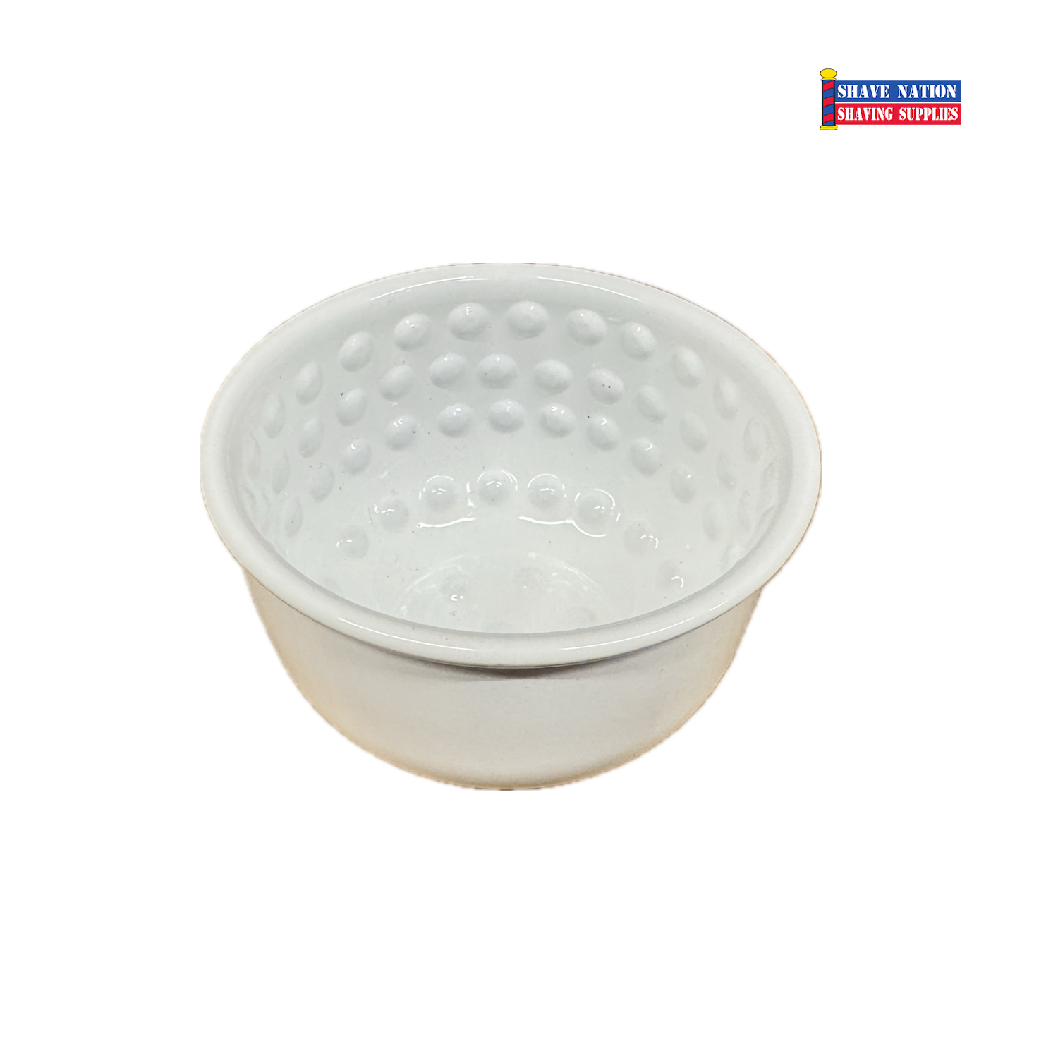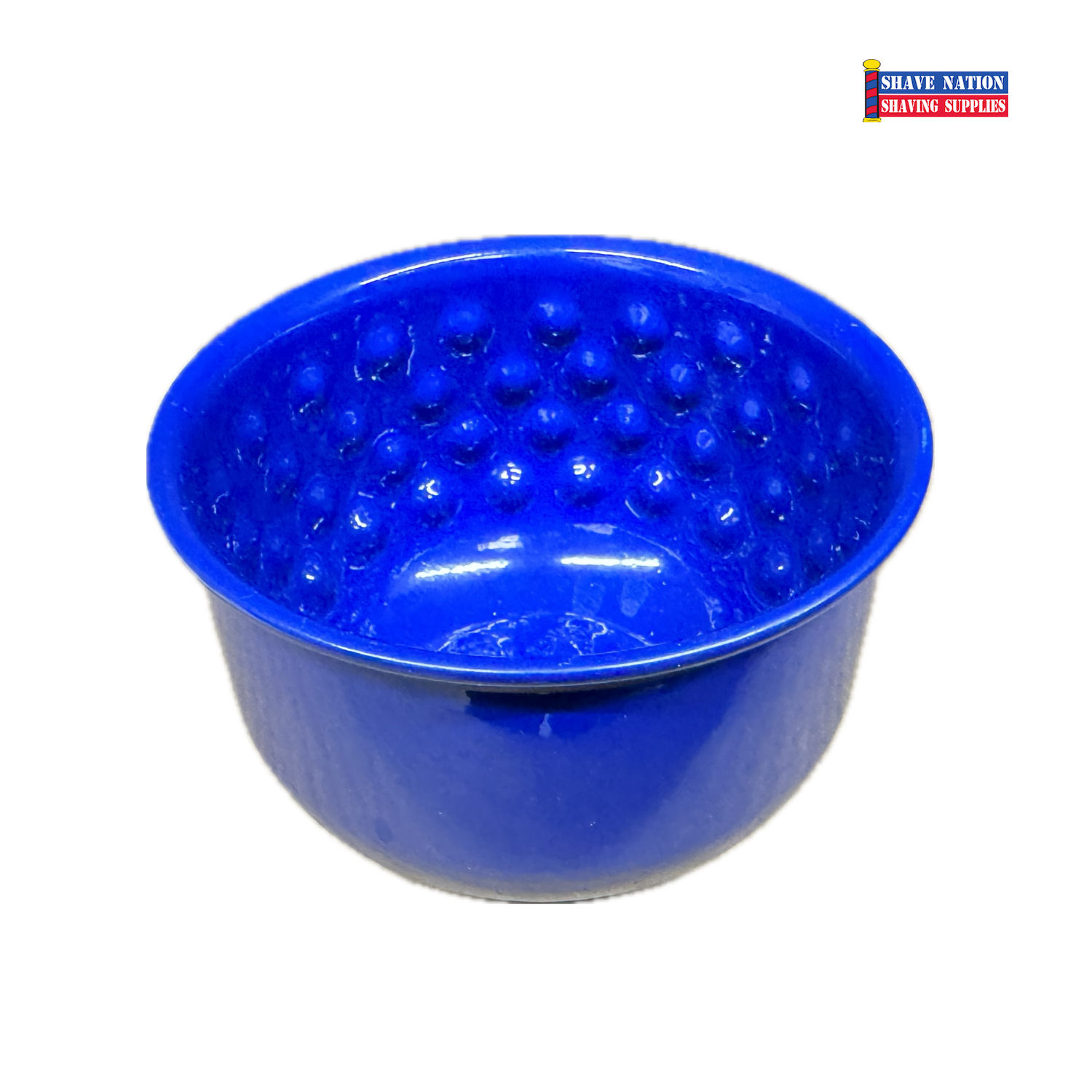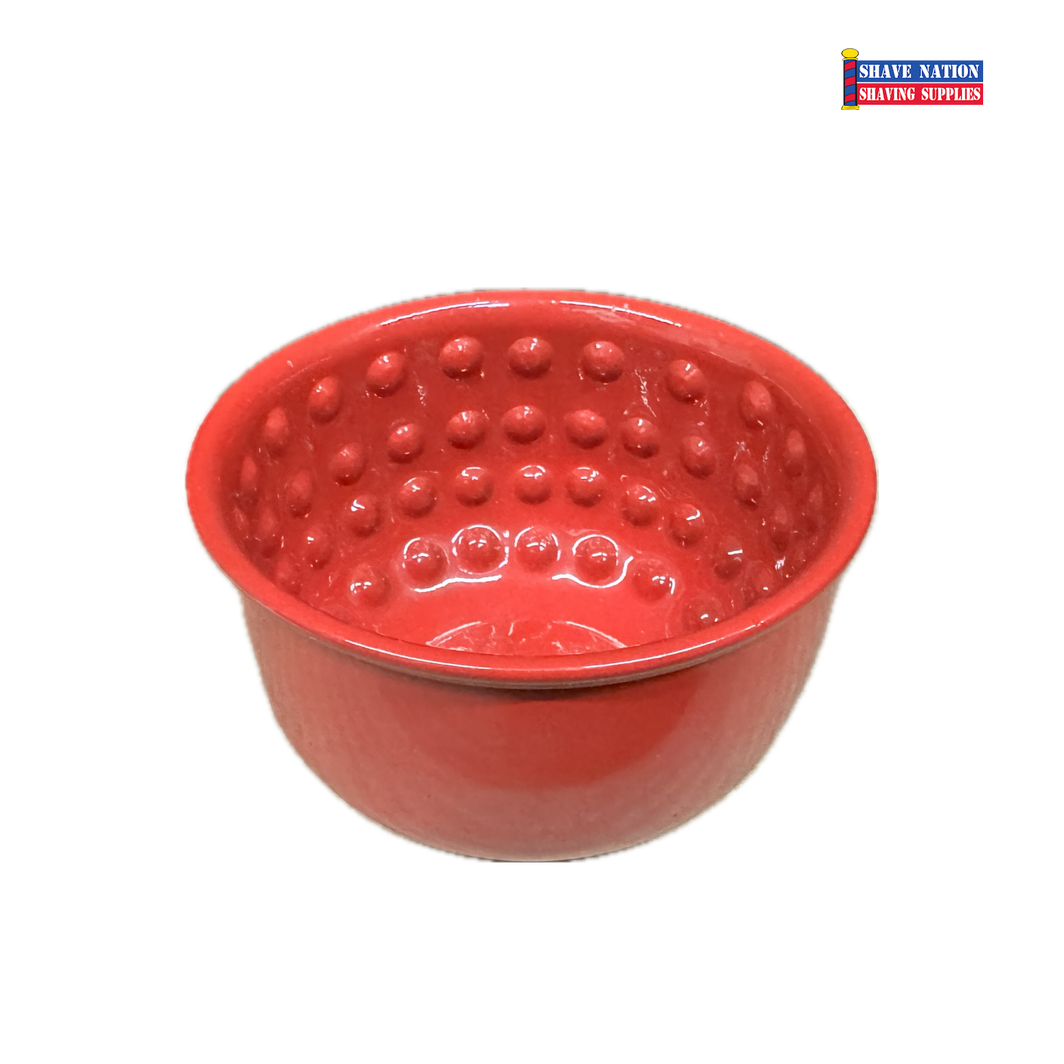 This is not just any old plain palm bowl. It is made of iron then finished in your favorite color. Has raised bumps inside the bowl to generate lather quickly! Weighs in at a hefty 7 oz. It fits comfortably in your hand. Super Durable and Unbreakable!
