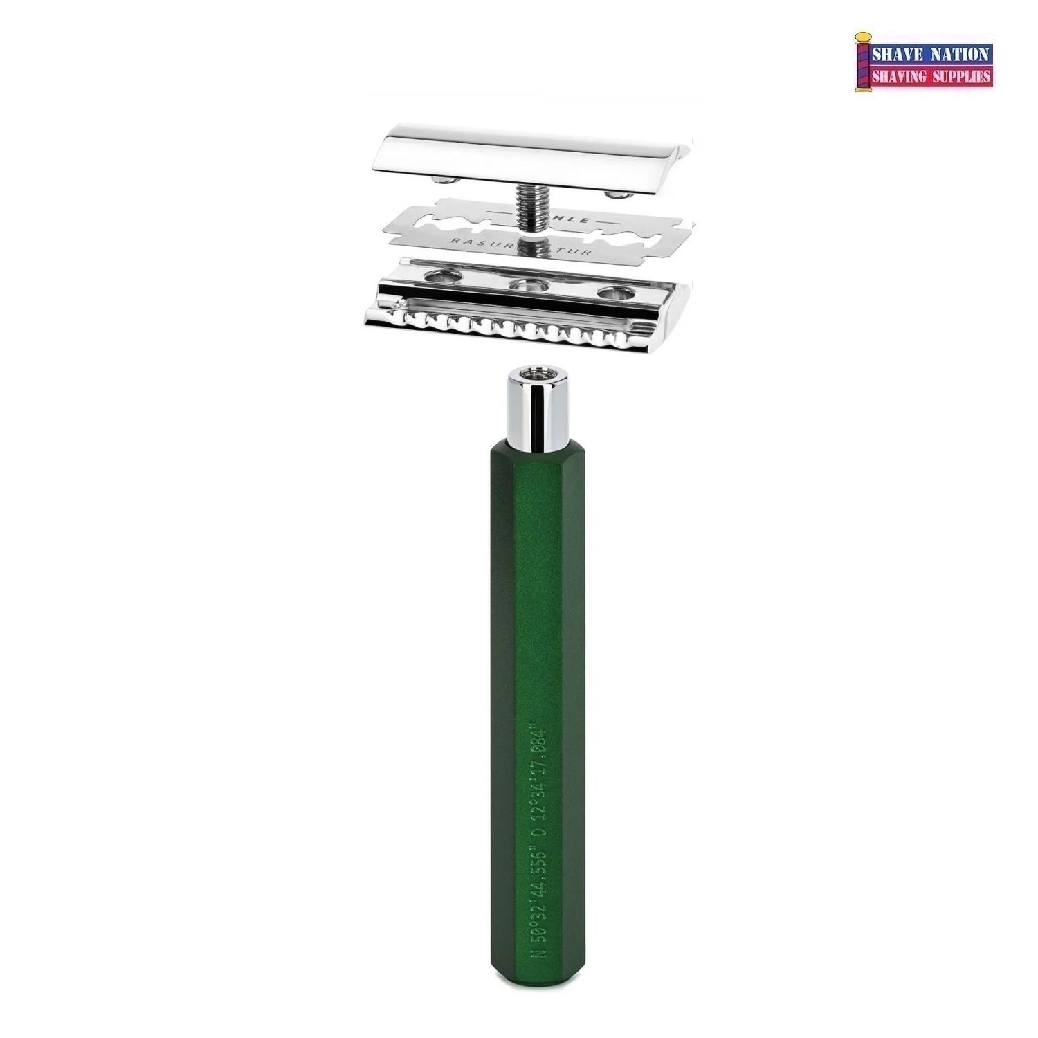 ***MÜHLE is engaved into the lower portion of the handle along with Latitude and Longitude Coordinates Believed to be the designated location of the MÜHLE Factory in Stützengrün, Germany. These unique markings may very well make these razors sought after collector's items***