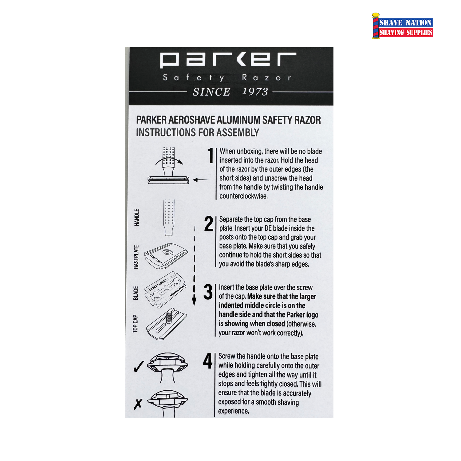 Parker AeroShave Aluminum S 3-Piece Safety Razor - Standard-Classic Length Handle **Just Introduced 2026**