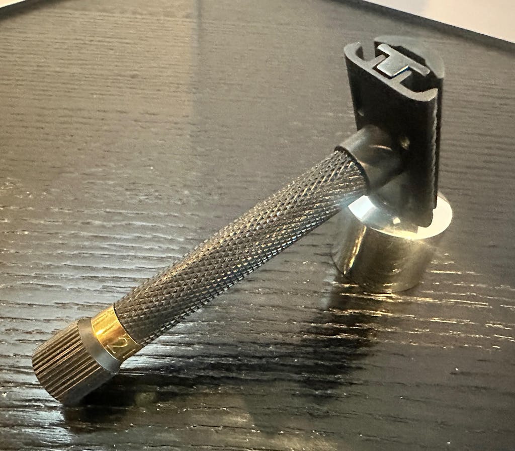 The Parker Variant 2 Piece Adjustable is a precision tool that will serve you well for many years. It is the perfect razor for beginners and experts alike. The blade angle can be adjusted by turning the knob on the bottom of the razor, so that the exposure can be set to each individual's preference. This beautifully designed black and satin chrome plated all brass frame is a heavyweight, smooth shaver. Parker Safety Razor has been making the highest quality, precision engineered safety razors for over 50 years.