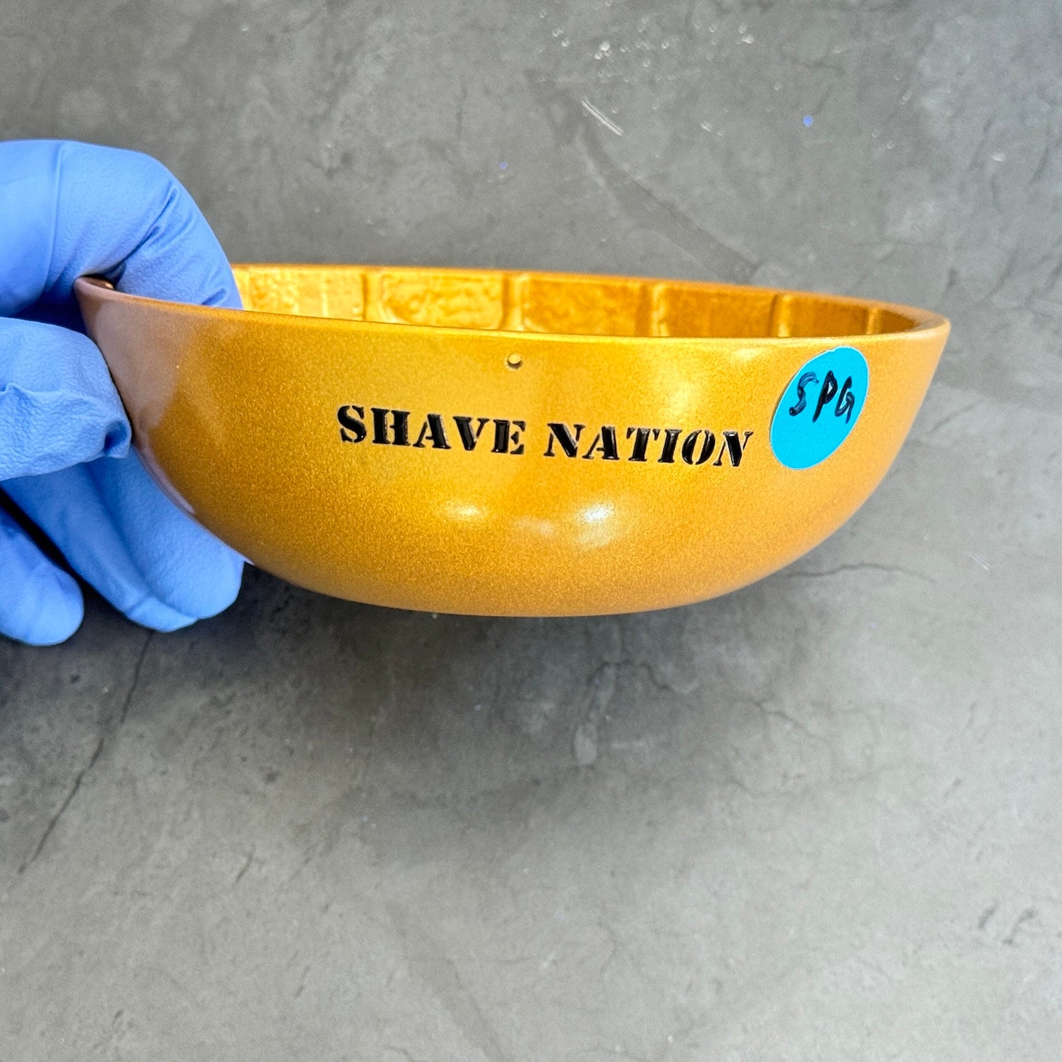 A soothing beautiful Gold Spider Web indestructibowl. Use it to mix shaving lather or store some Halloween candy in it!