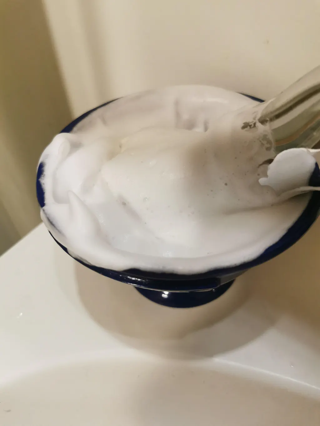 It goes without saying that this bowl will whip up Proraso cream (and Mr Selby, DR Harris, GEO F Trumper, Speick, Palmolive, TOBS, etc, & etc, ad nauseum) fast and effectively. I've tried all those listed above and each performed brilliantly coming out of this bowl after a 30-40 second whip & swirl with a boar brush. Because of the shape of the bowl itself, and the gentle lip at the edge, I no longer annoyingly bang the handle of my large brushes when doing an aggressive whip & swirl. And even if I did bang the bowl with my heavy-handled brushes, it wouldn't matter because this thing is indestructible. I watched Geo maul it was a hockey stick and baseball bat for 20 minutes on YouTube before he ran it over with a Jeep. It will handle your brush-handle abuse with grace. The pedestal is also a key design feature, and allows for any number of grip combinations while looking cool and gentlemanly on the sink in between shaves. I purchased the red one, and it adds a nice pop of color to my otherwise dark and windowless bathroom.