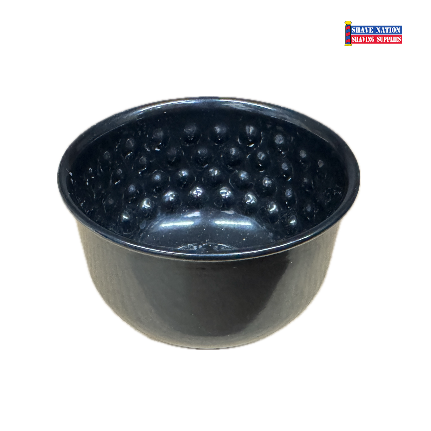 This is not just any old plain palm bowl. It is made of iron then finished in your favorite color. Has raised bumps inside the bowl to generate lather quickly! Weighs in at a hefty 7 oz. It fits comfortably in your hand. Super Durable and Unbreakable!
