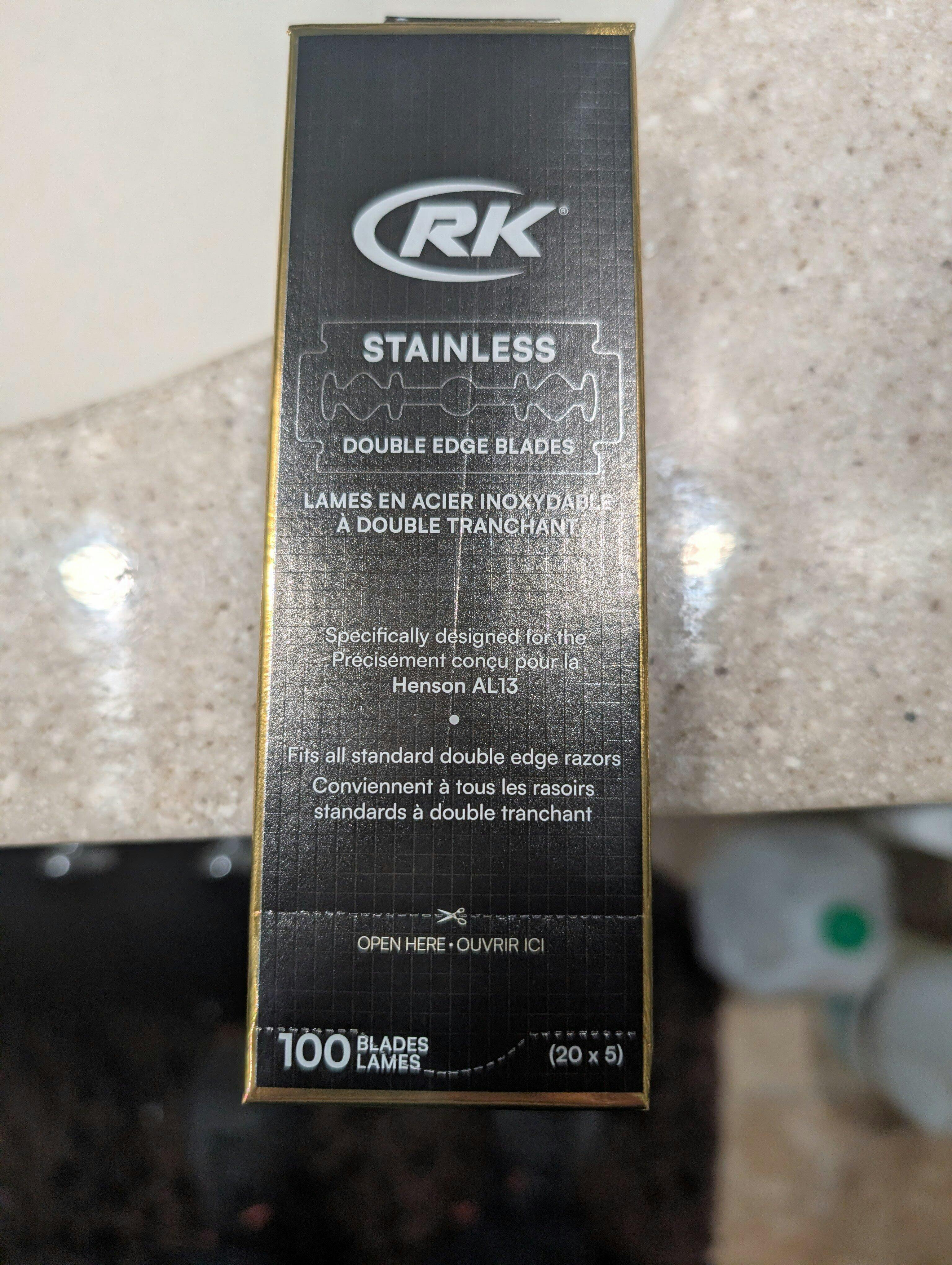 These stainless steel, double edge blades are specifically made to the dimensions of the Henson AL13. RK blades have an extremely high quality of manufacturing with consistent performance and sharpness that performs well when paired with the Henson AL13. Will also fit all other standard safety razors sold here. A 100 pack of blades should last the typical shaver 2-3 years.